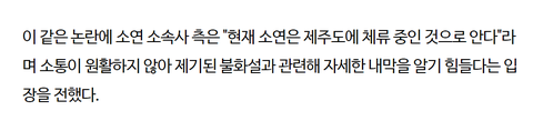 소속사는 현재 거리가 멀어 소통이 힘들어서 모르겠다고 하는 중.