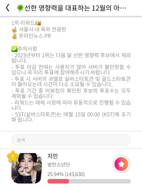 어플에서 영상광고 시청해서 투표권 얻거나 구매하면 되는데