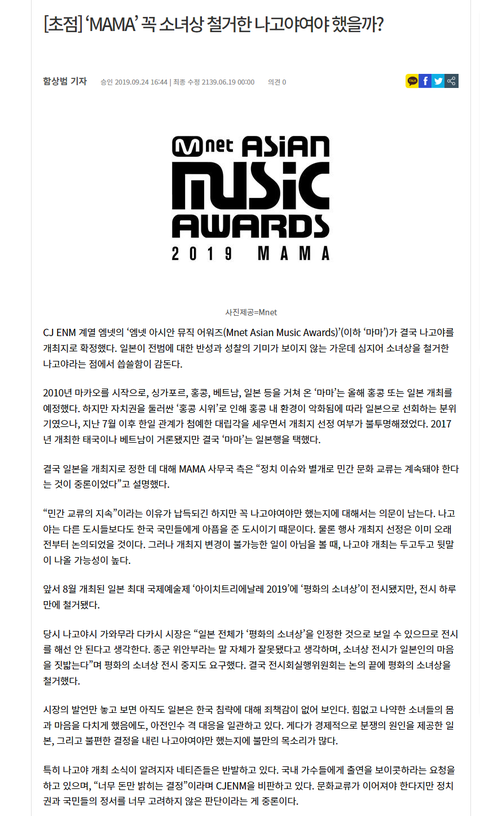 우리나라로 치면 위안부 피해자 기림의 날(8/14)에 일본시상식 가서 공연하는거랑 똑같은거네 당연히 안가지ㅋㅋㅋ