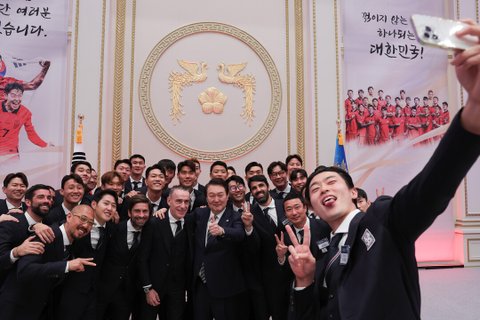 굥, 거니가 2022 카타르 월드컵 한국 축구대표팀의 16강 진출을 격려하기 위해 지난 8일 청와대 영빈관으로 국가대표팀을 초청해 만찬을 함께 하면서 기념사진을 촬영했던 것과 관련, 대통령실은 13일 “축구 국가대표팀 기념사진 및 기념품을 서울 용산 대통령실에 전시했다”고 밝혔다.