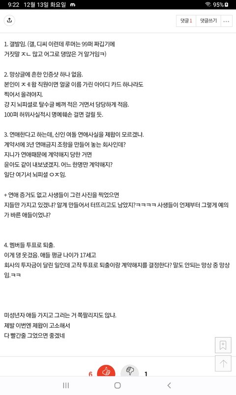 이분 내용이 맞는말인데 판녀들은 분위기 몰아가고 설윤이랑 경문 사귄 증거랑 정황상 팩트도 없고 또 지니는 절대 아니다 설윤은 맞다 ㅇㅈㄹ 하는데 역시 트위터 하는 ㅅㄲ들 남초 여초 하는 ㅆㄹㄱ들은 왜 안 사라지냐