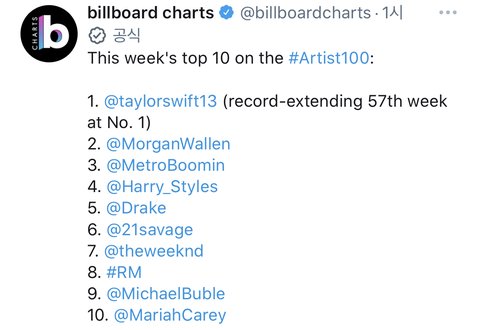 아티스트 차트에서도 8위로 뉴픽 찍었어!