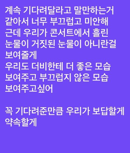 그냥 여러 문제가 많았음 멤버 두 명이 갑자기 활중 때리는 둥 회사는 구체적인 공지 하나를 안내고 해투로 튀고 이번년도 콘서트만 뱅뱅 돌리다가 겨우 낸 앨범이 위스퍼 정도? 더보이즈 팬들은 리빌 더스틸러 이런 컨셉이랑 칼군무에 대부분 입덕하고 좋아한건데 가면 갈수록 청량도 모양빠지고 퀄리티 박살난 앨범 들고 오니 힘빠지고 투표나 스밍 안돌리게 됨. 멤버들은 항상 미안하다 ~~이래서 바빴고 힘들었다 앞으로 잘하겠다 이를 갈아서 올테니 좀만 기다려달라 이거 22년도 1월부터 무한 반복임. 항상 문제 생기면 회사가 아니라 매일 프메오는 김영훈이 대신해서 사과하고 미안한 팬들은 아니라고 괜찮다고 다독여줌 이거 무한반복이라 팬들도 지칠대로 지침. 자컨도 없지 멤버들은 맨날 바쁘다고 위더보, 프메, 브이앱 안오는데 그만한 아웃풋도 없고 올라오는것도 없지 난장판임. 그와중에 어제 시상식에서 상받은거 이재현만 고맙단 말도 없음 다른멤버 다 인스타 프메 위더보로 고맙다는 말 전했는데.