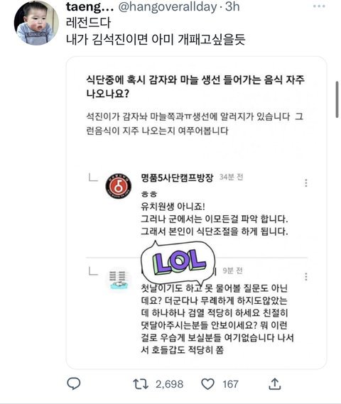 뭔 애도 아니고 방탄 군대갈때마다 이러는거아님?ㅋㅋㅋㅋㅋㅋㅋㅋㅋ내년에 정국 랩몬 뷔 지민 군대가도 이럴꺼냐?
