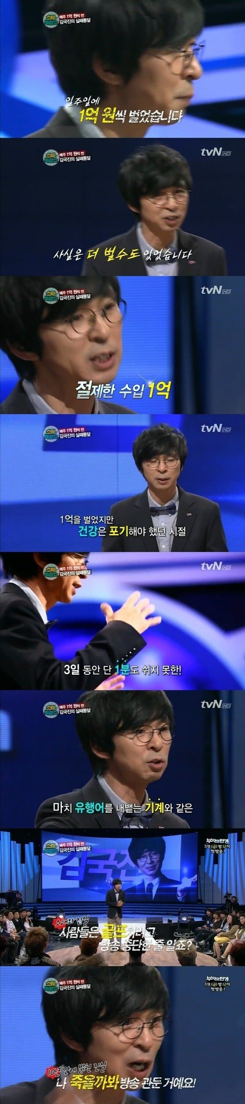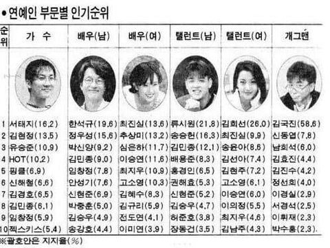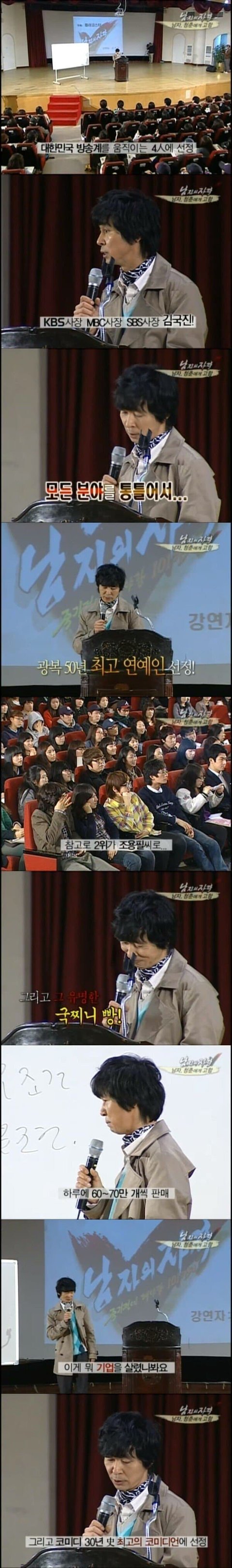 34살 삼촌이다 김국진.. 지금의 유재석 강호동 이수근 등등 다 합쳐도 못이겨 특히 전성기시절은... 지금이야 워낙 옛날사람이고 골프에 이혼 등등 겹쳐서 타락했었지만.. 90년대는 지렸지.. 솔까 나도 89년생 아잰대 기억이 가물가물한데 90년대 2000년대생은 아예 모르는게 대다수지.. 음 여보세요 씨티폰 수많은 유행어를 말했지.. 말만 하면 그당시에 빨빵터지고... 순수하고 서민적인 말투 어리버리한 모습 난 국진이형 매우 좋음. 일화가 처음 본 대학생한테 등록금이 없어서 선뜻 내줬다나 뭐라나...;; 또 너무 돈이 많아서 놔둘때가 없어서 전자레인지 안에 넣었던 썰이 있음