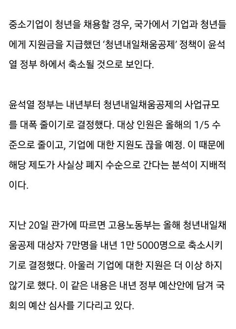 윤석열 정부, 청년내일채움공제 폐지 추진