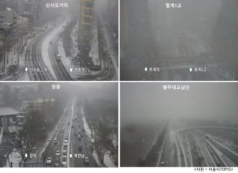 현재 서울 중부지방 상황 눈이 앞이 안보일 정도 쏱아짐