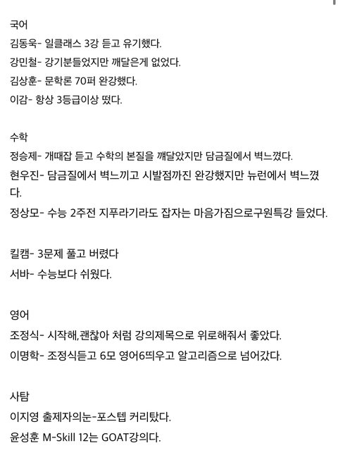 실제로 1타 강사만 무지성으로 유명해서 듣는 애들 많고