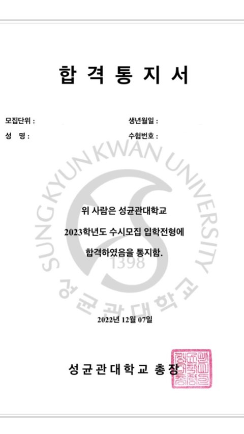 올해 5월달에 아빠 쓰러지시고 엄마는 아빠 간병하신다고 많이 바쁘셨는데 나 혼자 버스타고 멀리있는 학교(특목고) 다니면서 올해 성대 합격했어. 물론 연고대 떨어지고 붙은 성대라 많이 아쉽긴 하지만 그래도 잘한거 맞지? 엄마 아빠한테도 큰 힘이 된대서 다행이야