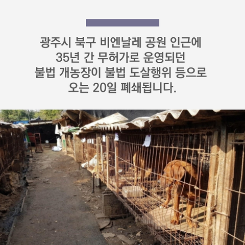 '뜬 장' 이라 불리는 우리에 62여마리의 개를 사육하던 광주의 개농장이 불법 도살 의심 신고로 철거 결정이 내려졌습니다.