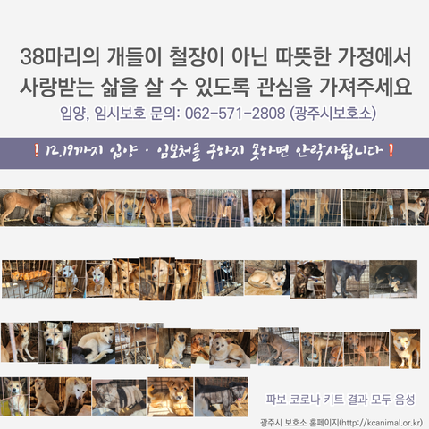 폐사, 입양, 임시 보호와 포화 상태인 광주시보호소에서 데려간 개들을 제외하면 총 38마리.