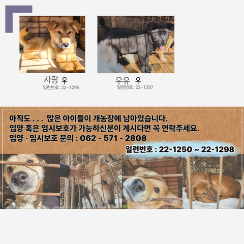개인봉사자(DM문의 가능): 광주동물보호소의 익명 (@saramdoolajebal) / 트위터 (twitter.com)19일까지 시간이 얼마 남지 않았습니다.아이들 얼굴 한 번씩 봐주시고 널리널리 알려주실 수 있으면 감사하겠습니다.