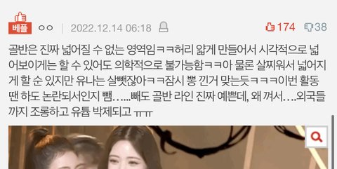 레벨에서 몸매 제일 기복 없이 마른 게 슬기랑 아이린 아님......? 물론 아이린 살 많이 빠졌을 때도 있는데 활동하면서 걍 내내 말랐음