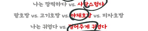 어떻게 막내라인만 야채호빵을 고를수가 있나요