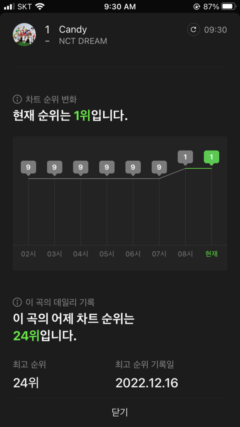 왜 나는 현재 순위까지만 나오지? ㅜㅜ 차트 리포트 보기로 봤는데