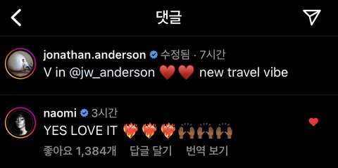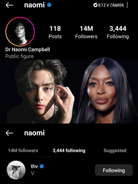 아니 나오미 캠벨 웃긴게 뷔 팔로우하긴 했는데