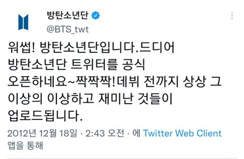 방탄소년단이 트위터를 공식오픈한지 10년째 되는 날임