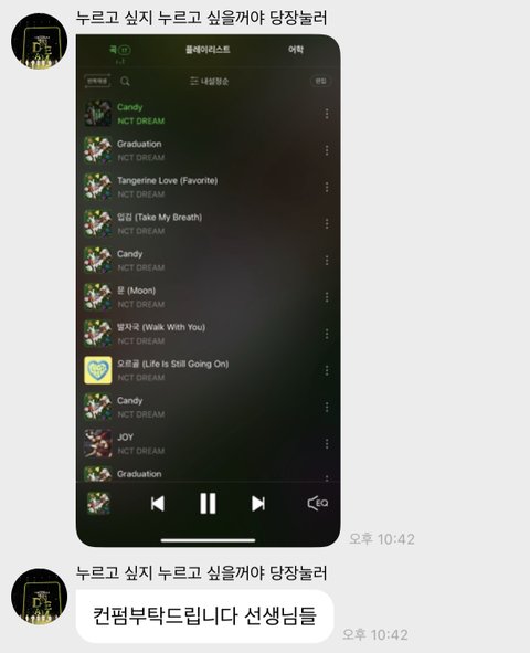 한곡재생 off + 시즈니에서 선생님들로 호칭바뀜