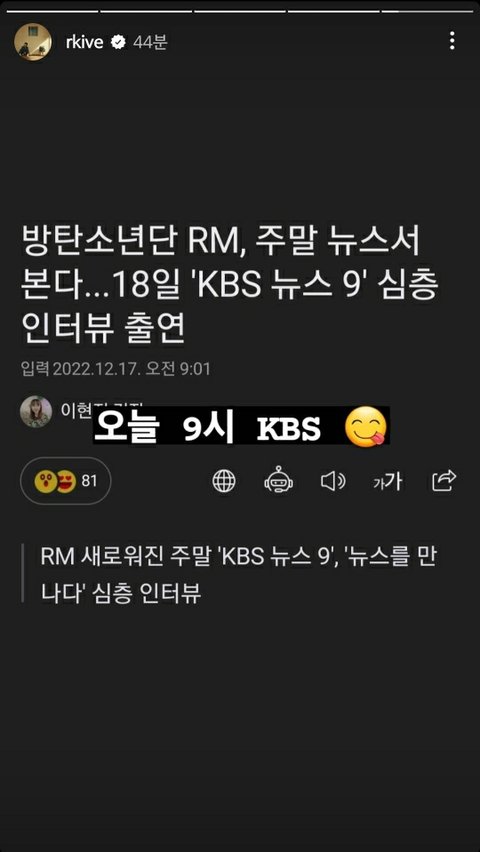 오늘 아홉시 뉴스 님주니나왕!