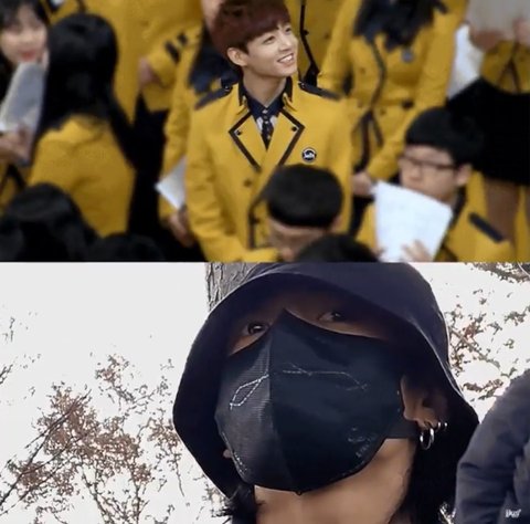 고등학교 입학식의 정국이/진 입대 지켜보는 정국이