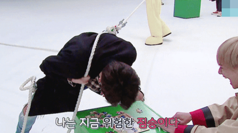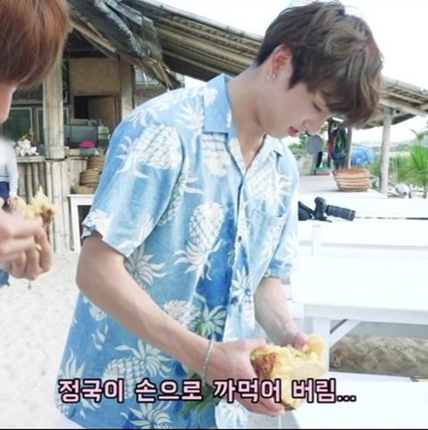 정국이는 손으로 파인애플을 찢어,,,