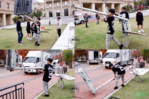 어깨로 농구골대도 옮기고...