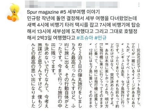 둘이 세부 다녀온지 얼마 안됐을때 슈아가 민규한테 쓴 롤페ㅋㅋㅋㅋㅋㅋㅋ