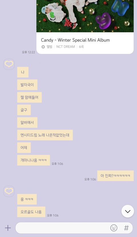 보내줬는데 발자국이 젤 좋대 그리고 알바에서 드림 노래 짱 많이 나왔대 차트 돌리셔서 그런가?ㅋㅋㅋㅋ
