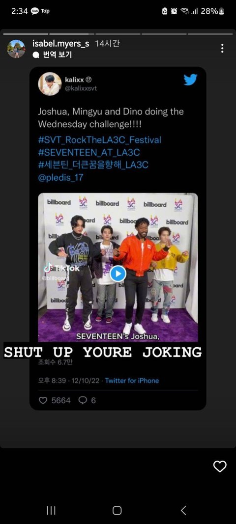 세븐틴 멤버가 웬즈데이 챌린지 동영상과