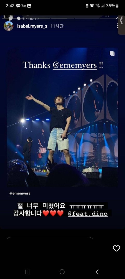 엄청난 K-pop팬으로 최근 갔던 세븐틴 콘서트를 언급하여 찐팬인증함.