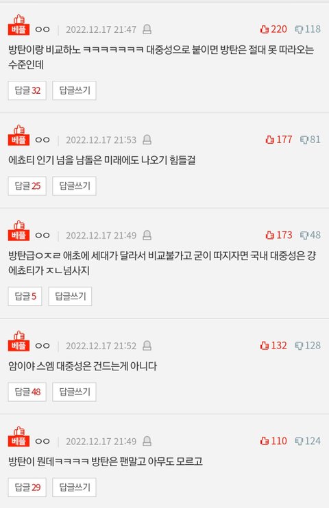 갤럽 가수부문 5년째 탑이고 다너마는 3년째 갤럽탑인데 판녀들이 남돌중에 맨날 방탄만 패는 이유가 있음ㅜㅜㅋㅋㅋ