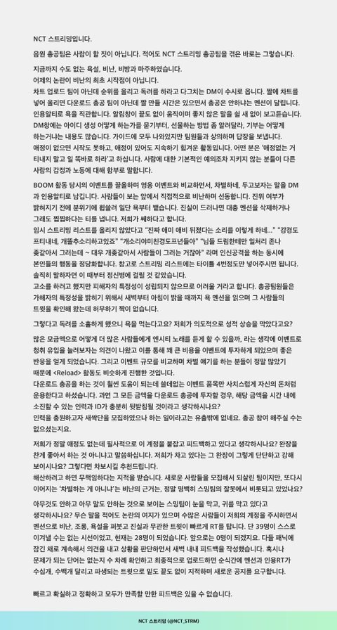 엥 엔시티 스밍팀 사건 원래 이거였네