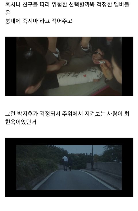 둘 다 합치면 맞을거같은데 다친 버니즈를 위로해주는 아이돌