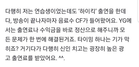 뭐라는거야 다들 아이돌들 돈 겁나 잘 벌어 저기가 씹양아치고 우리가 아는 판에서 언급되는 애들은 ㅈㄴ 잘벌어 해투 한번만 돌아도 오는 수익이 있는데 글고 요샌 인스타 올리는 비용도 쏠쏠해서 돈 버는 수단 다양해짐 판이나 어디선가 들어본 애들은 어떻게든 많이 벎 대형은 떼돈 버는거고 뉴진스가 제대로 활동하기도 전 데뷔 두 달만에 정산 받은거 봐라 대형은 걍 오지게 번다고 보면 됨