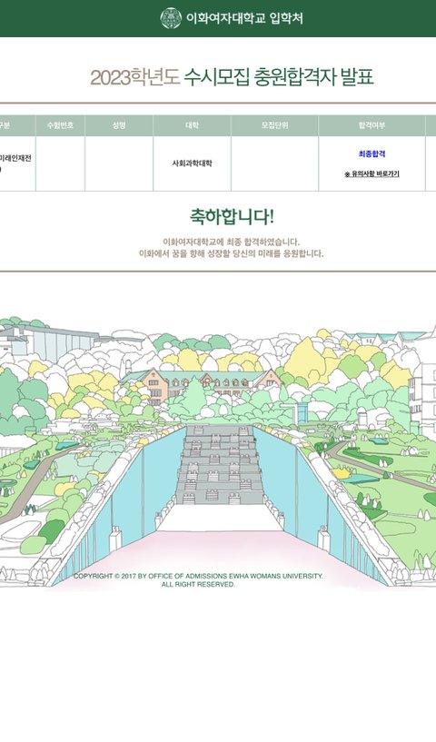 +)뭐야 친구들이랑 놀고 왔더니 댓글 엄청 많이 달려있어서 놀랐음.. 축하해준 모두 진짜 고마워❤️❤️ 그리고 몇몇 사람들에 의해 폄하되더라도 그 명성이 흔들릴 학교가 아니란걸 아니까 신경 진짜 1도 안쓰임!! 고3 친구들 내 기 나눠줄테니까 다들 대학 붙었으면 좋겠고 다들 2022 연말 잘 마무리해!!!
