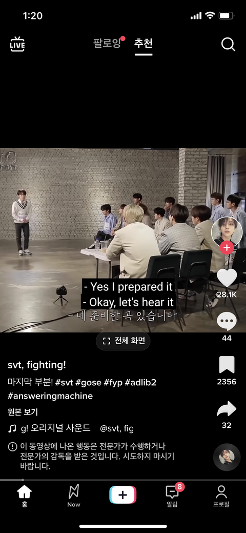 틱톡 보다가 넘 웃겨서ㅋㅋㅋ이거 무슨 영상이야? 아니 근데 디노 노래 잘 부른다ㅋㅋㄹㅋ아 그리고 세븐틴 노래 잘 듣고 이써ㅎㅎ