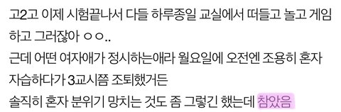 혼자 자습하고 3교시 조퇴해서 분위기 망친다는 발상도 어이없네..