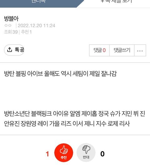 블랙핑크 제니 지수 로제 아이유 방탄 슈가 뷔 정국 지민 엔시티 에스파 카리나 윈터 지젤 아이브 리즈 장원영 뉴진스 민지 하니 투바투 연준 수빈 세븐틴 민규 호시 레드벨벳 슬기 조이 방탄소년단 블핑 임영웅 아이브 장원영 안유진