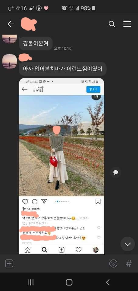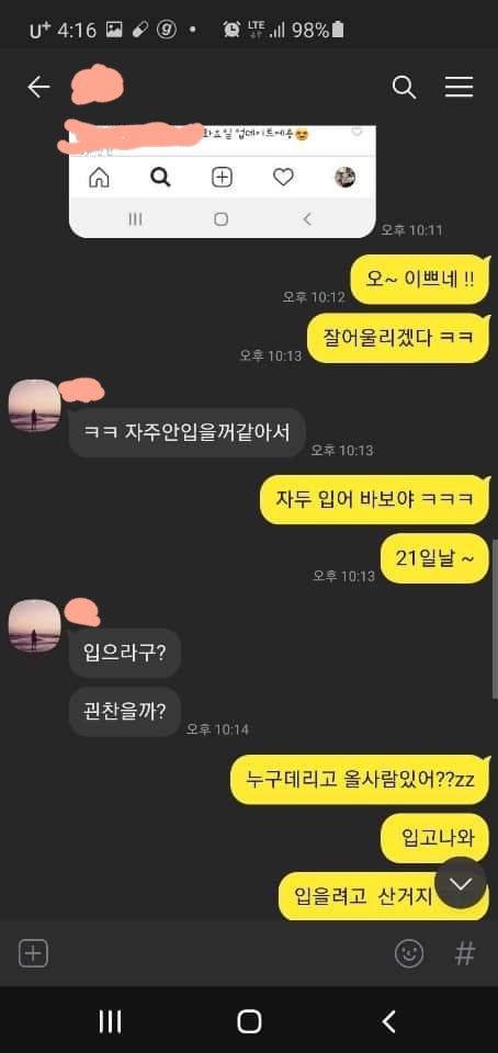 그리고 그여자한테 톡을 보냇죠. 왜그러냐면서 그랫더니 답변이 아주 무서운여자더라구요...