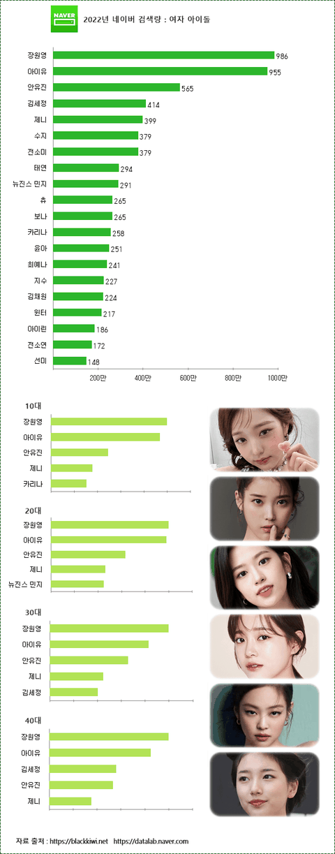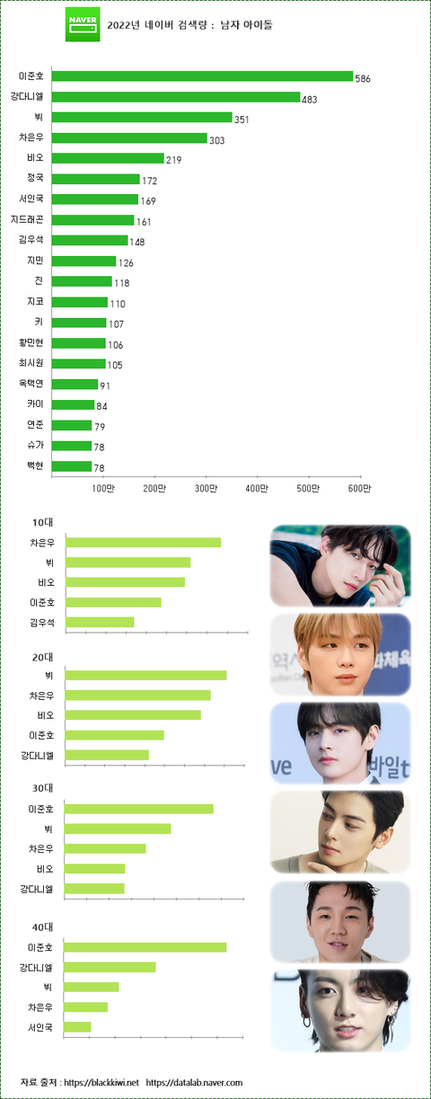 이준호, 강다니엘, 뷔, 차은우, 비오, 정국, 서인국, 지드래곤, 김우석, 지민, 진, 지코, 키, 황민현, 최시원, 옥택연, 카이, 연준, 슈가, 백현, 방탄소년단, 아스트로, 빅뱅, 샤이니, 슈퍼주니어, 슈주, 엑소, 장원영, 아이유, 안유진, 김세정, 수지, 전소미, 태연, 민지, 츄, 보나, 카리나, 윤아, 최예나, 김채원, 윈터, 아이린, 전소연, 선미, 아이브, 소녀시대, 뉴진스, 이달의 소녀, 이달소, 우주소녀, 에스파, 아이즈원, 르세라핌, 레드벨벳, 아이오아이, 원더걸스, TXT, 투바투, (여자)아이들