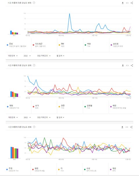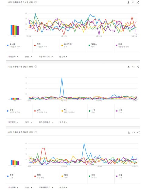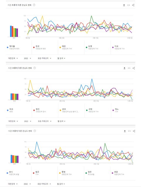 2022년 국내 구글에서 가장 많이 검색된 남자아이돌그룹 멤버 TOP50