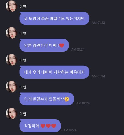 미연이 했던 말 같은 거 담은거라 미연이 본인 말 한마디 한마디 기억해 줘서 고맙다고 함..