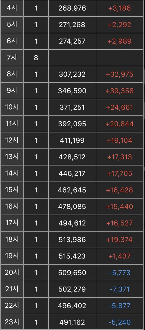 아이들은 24시간 지나도 이용자수가 붙는데 뉴진스는 후두둑 빠짐