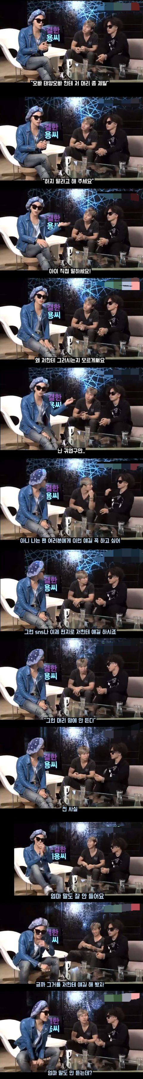 라이브방송때 태양 헤어스타일에 관한 이야기가 나옴