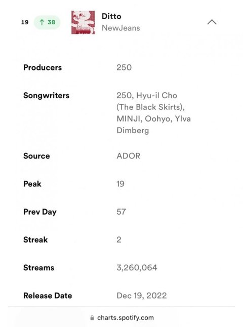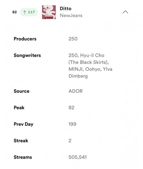 Ditto 글로벌 스포티파이 19위, 미국 스포티파이 82위