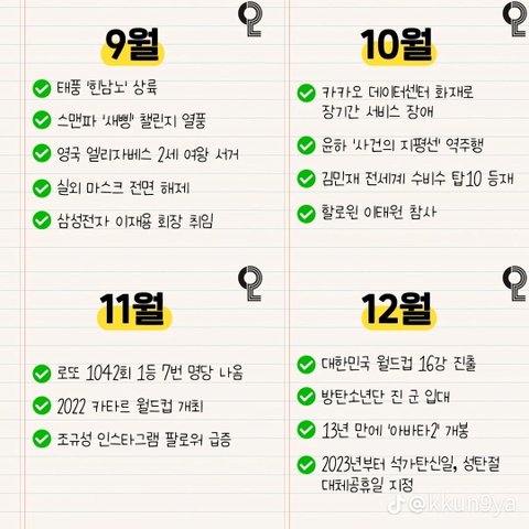 동계올림픽부터 러시아 전쟁, 대통령 선거, SPC불매, 가평계곡 살인, 태풍으로 주차장 침수, 월드컵, 걸그룹 대전, 김가람 학폭, 주기자, 우영우, 범죄도시2, 돈스파이크 마약, 김새론 곽도원 음주운전, 이태원 압사 등 당장 생각나는 것만 해도 이정도임 .... 내가 느끼기엔 근 몇년간 가장 떠들썩한 한해였던 거 같음