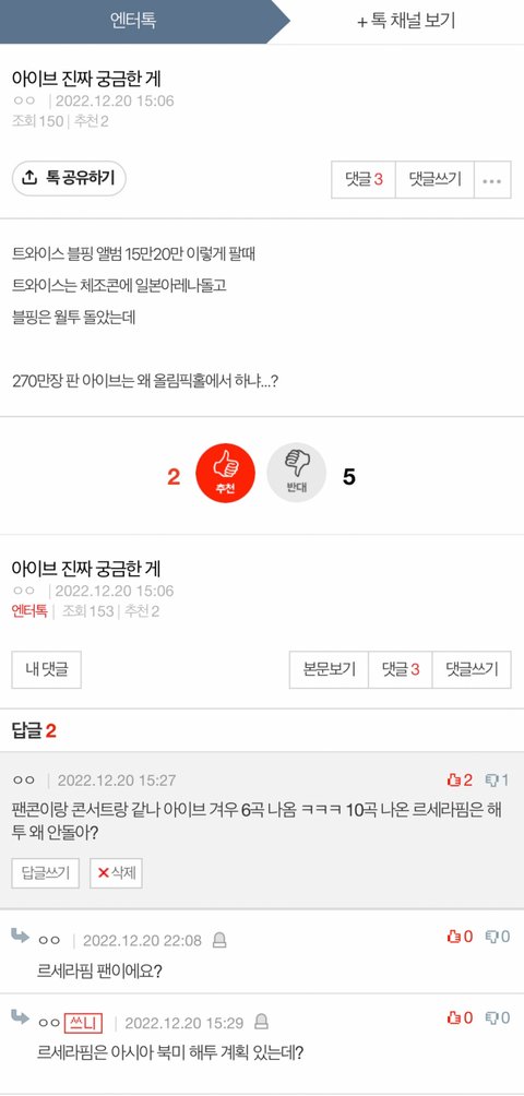 댓글 많은 톡