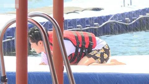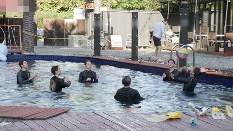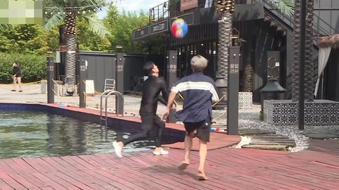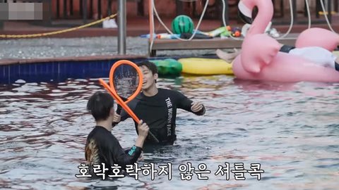 빠지 갔다와서 수영장에서 수중 배드민턴