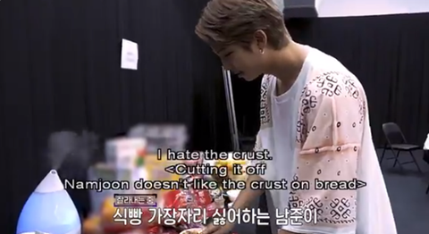 남준이가 빵 가장자리 싫어해서 잘라내면