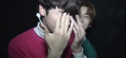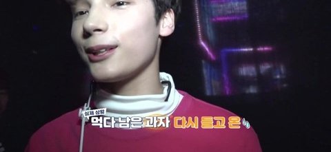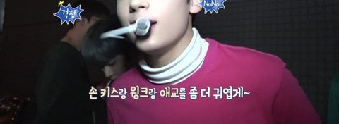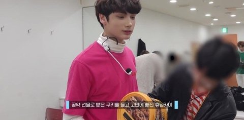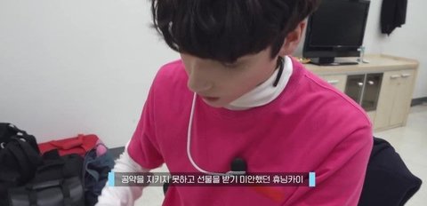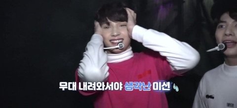 무대 중 제스처 미션을 하기로하고 과자를 받아간 휴닝이